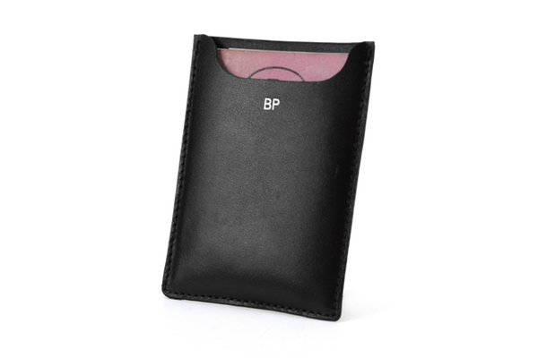 Maximal reduzierte Fahrzeug- und Führerschein Lederhülle als Sonderanfertigung mit Monogramm in Silber aus dem L'Atelier von Justine Nessi in München.