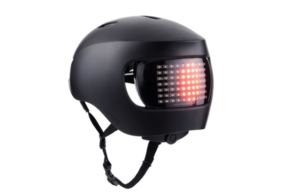 Der Lumos Matrix Helm mit seinen integrierten LEDs ermöglicht seit Ende 2019 auch Fahrradfahrern Blinker- und Bremslichtfunktionen. Das 1000 Lumen LED Matrix Panel ist anpassbar und vielseitig nutzbar. Die Laufzeit für den 580 g leichten Helm wird mit rund 10 Stunden angegeben - bei 5 Stunden Aufladezeit.